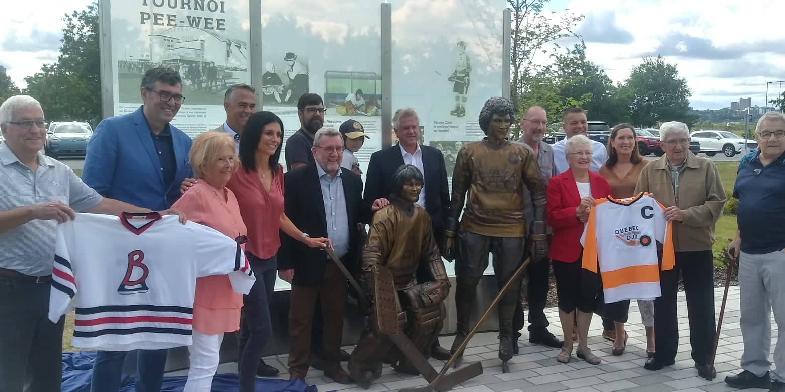 CÉLÉBRATION. La Ville de Québec a inauguré un monument pour souligner les 60 ans du Tournoi international de hockey pee-wee de Québec. La sculpture de couleur bronze est une représentation de deux joueurs qui ont marqué l’histoire du tournoi, l’ancienne gardienne de but Manon Rhéaume et l’un des meilleurs joueurs de l’histoire du tournoi, Sylvain Côté.