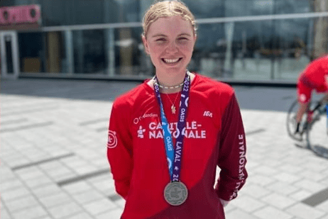 PERFORMANCE. Athlète carougeoise prometteuse en cyclisme, Abigaël Fortier a dignement représenté la Capitale aux récents Jeux du Québec. Participant aux épreuves dans la catégorie U17 à l’âge de 15 ans, elle a récolté l’or au contre-la-montre (CLM) par équipe, l’argent deux fois au sprint 300 mètres et au critérium, ainsi que le bronze au CLM individuel. Enfin, sur le circuit routier, elle a fini au pied du podium en 4e place.