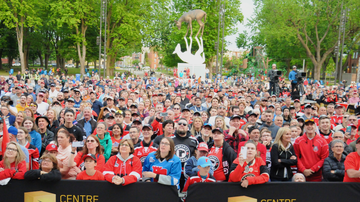 Au lendemain de la victoire des Remparts de Québec en finale du tournoi de la Coupe Memorial, plus d’un millier de partisans de l’équipe ont célébré la triple couronne remportée par les joueurs de l’édition 2022-2023 en compagnie de ces derniers sur la Place Jean-Béliveau.