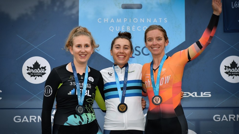 Cyclisme. Lors des Championnats québécois de cyclisme sur piste, Évelyne Gagnon (extrême droite), originaire de Chicoutimi et étudiante à l’Université Laval, a décroché la médaille de bronze chez les femmes
