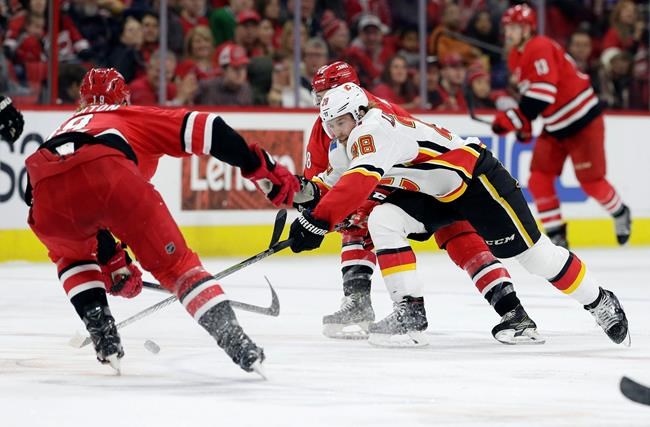 RALEIGH, N.C. — Derek Ryan, Elias Lindholm et Noah Hanifin ont tous marqué contre leur ancienne équipe et les Flames de Calgary ont vaincu les Hurricanes de la Caroline 4-3, dimanche.