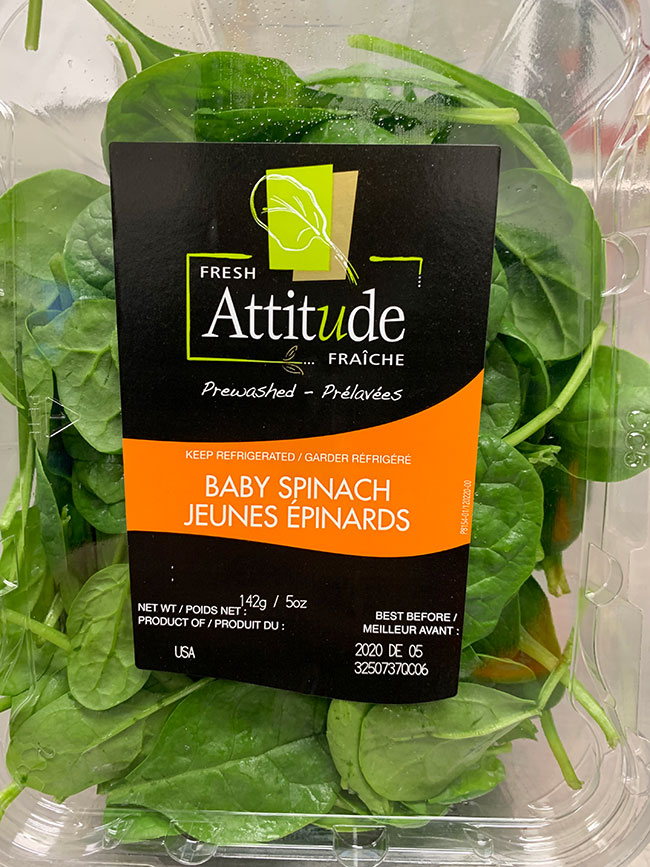 Vegpro International procède au rappel de jeunes épinards de marque Attitude Fraîche parce que ces produits pourraient être contaminés par la bactérie Salmonella. Les produits visés décrits ci-dessous ne doivent pas être consommés.