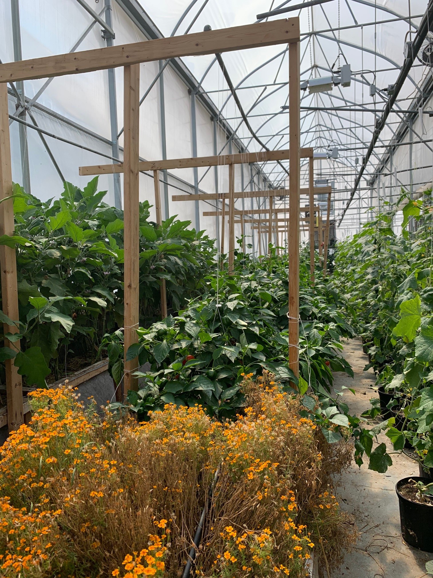 Les chambres à semis dans lesquelles ils sèment trois fois par semaine pour avoir toujours de nouvelles pousses fraiches sont à la noirceur complète et chauffées à 30 degrés. Ensuite, les pousses sont transférées dans les serres. Les fines herbes produites à l’intérieur sont plus tendres que celles qui poussent dans les champs. À titre d’exemple, il n’est pas nécessaire d’effeuiller le basilic de serre pour le consommer puisque la tige ne durcit pas.