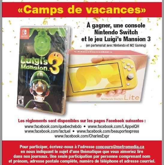 Règlements du concours Être âgé de 18 ans et plus. Le concours sera affiché dans la section spéciale «Camps de vacances» qui sera publiée le 5 février 2020 dans les